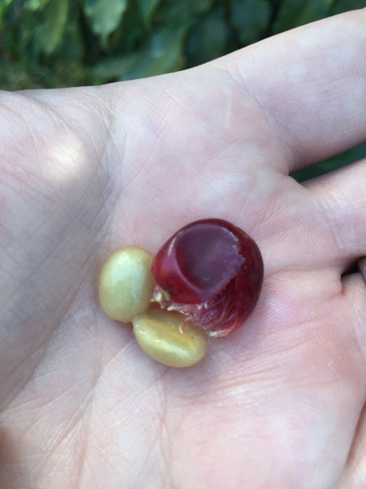 We tasted the fruit it was a semi sweet cherry flavour. The mucilage around the beans is the sweetest. The farm is like most Brazilian farms. Automation of the farms started in the nineties. Most of the coffee is natural (dry process) or pulp natural (semi natural). There is s small amount of washed that is mainly produced for local consumption by the big multi nationals that are not allowed to import coffee, but must use the local coffee. So they get the farmers to produce washed coffee for a different Flavour.