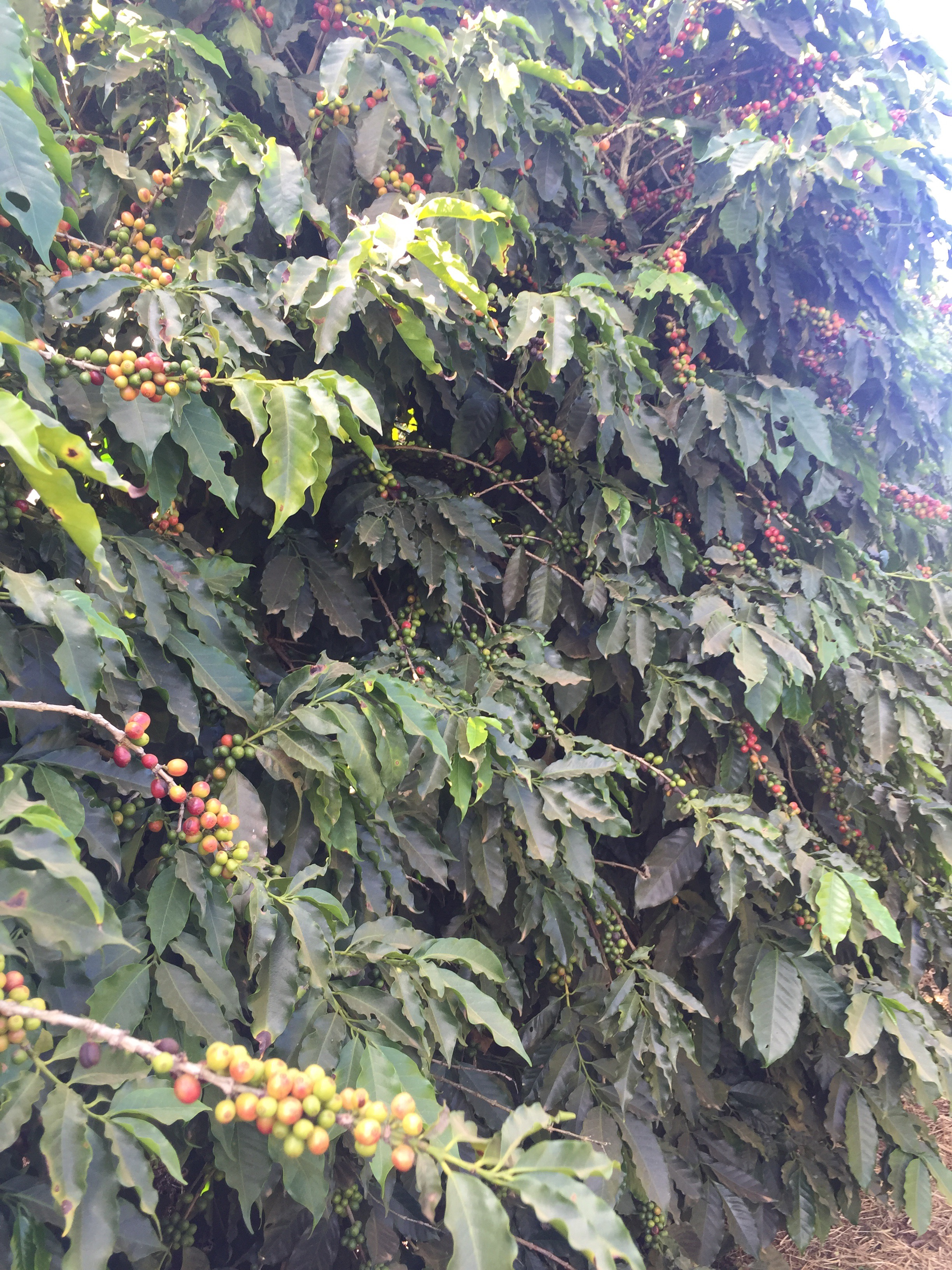 The first variety we saw was Topazio variety (A mundo nuvo and caturra blend). The different levels of ripeness were clear on the tree with the different colours on the tree.
