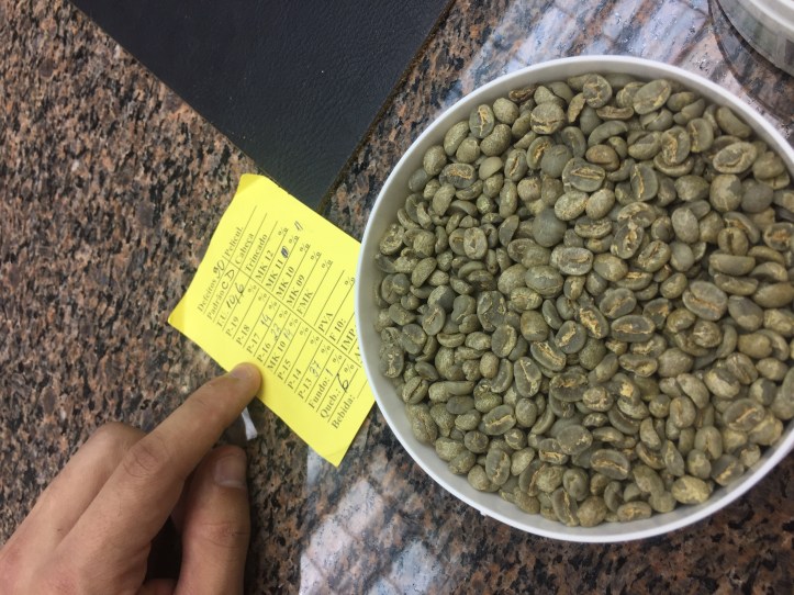 We returned to the warehouse to look that the sizing sorting and control. the warehouse has fully electronic humidity control. Every coffee that comes into the warehouse is tag and is followed electronically. As each lot is moved it is placed over a electronic sensor in the floor which then controls it movement through the process allowing for full trace-ability to the producer. Each coffee is size and optically sorted (see pics below)