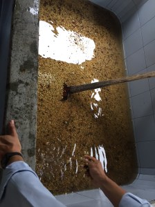 While we were there Caravela explained the advantages of using a floating tank. Thank de-pulper is under the tank but the valve is closed. The fill the tank with water which then results in the unripe, overripe and damaged beans floating. These are then skimmed off the top to be processed as a C Grade coffee so that it does not affect the good coffees that are ripe and ready and sink.